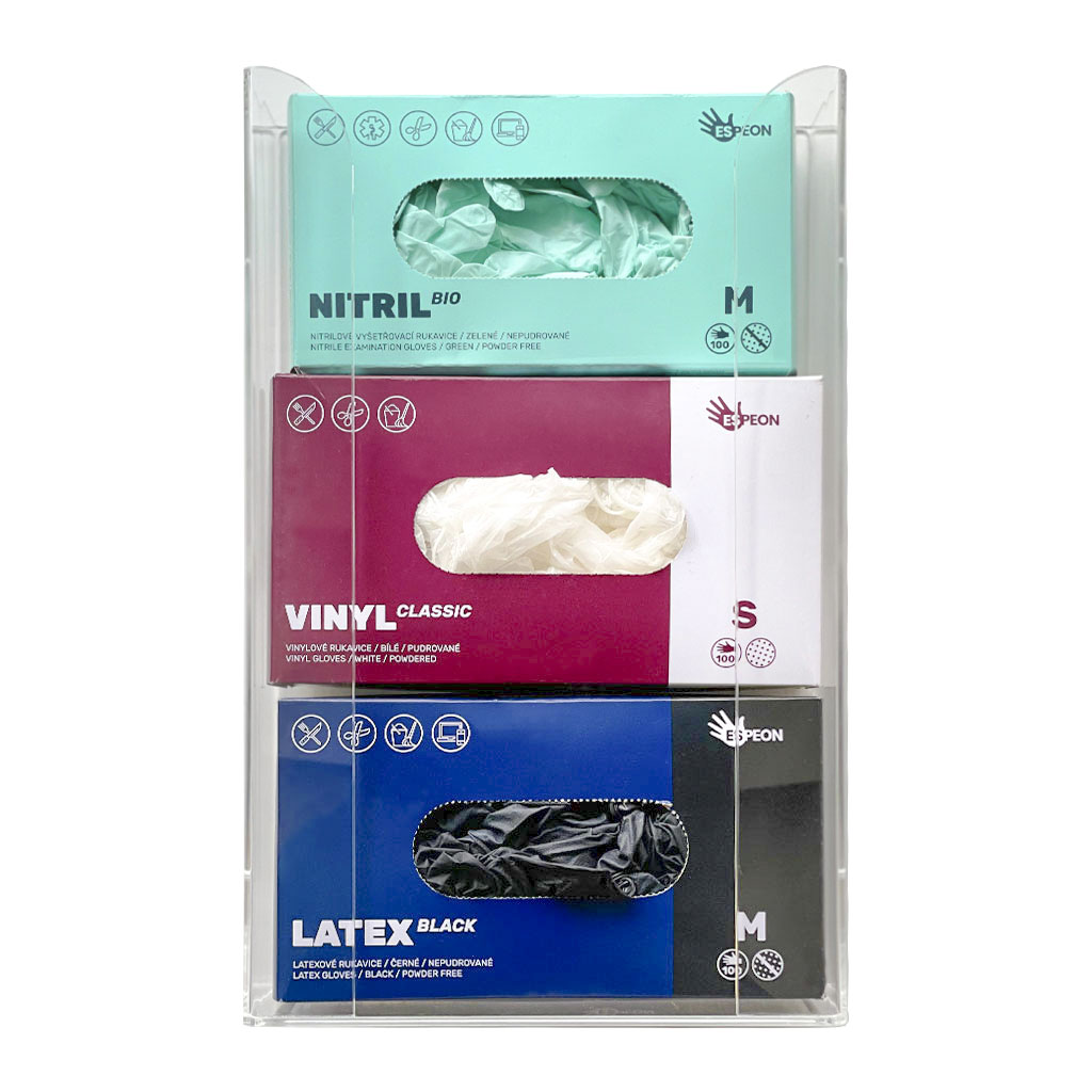 Zásobník na 3 krabičky rukavic – 1 ks, akrylát, transparentní