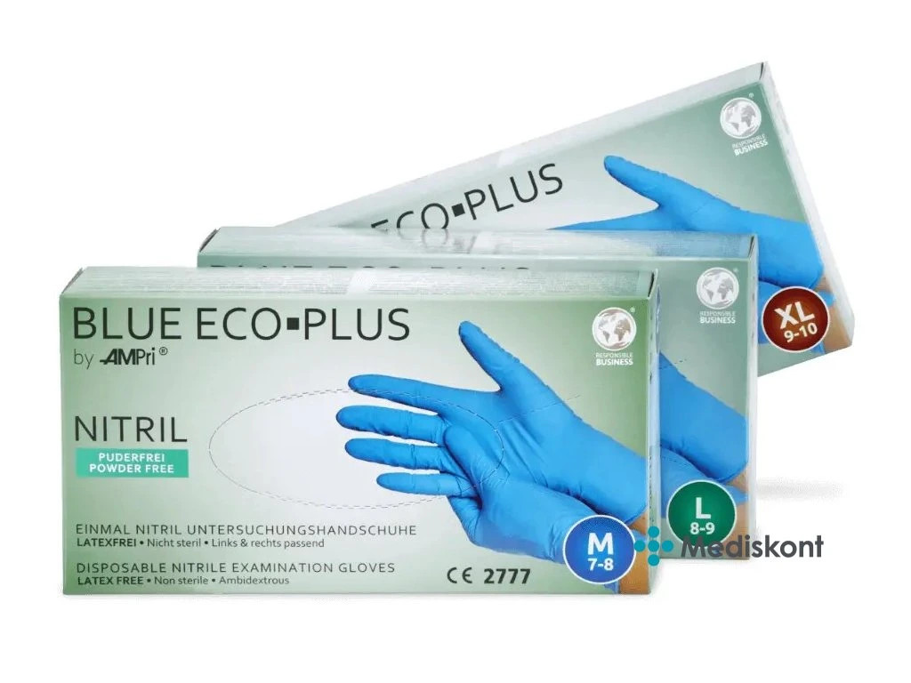 Nitrilové rukavice AMPri Blue Eco Plus, modré, nepudrované, 100 ks Trvale snížená cena 85,00 Kč 95,00 Kč